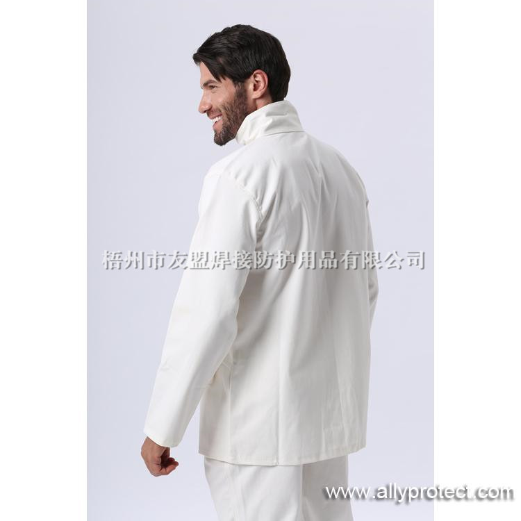 - 產(chǎn)品描述: 白色防火阻燃服,可水洗不縮水,推薦適用于燒焊、鑄造、化工、石油、機(jī)電等有火焰或火警的危險(xiǎn)行業(yè)。