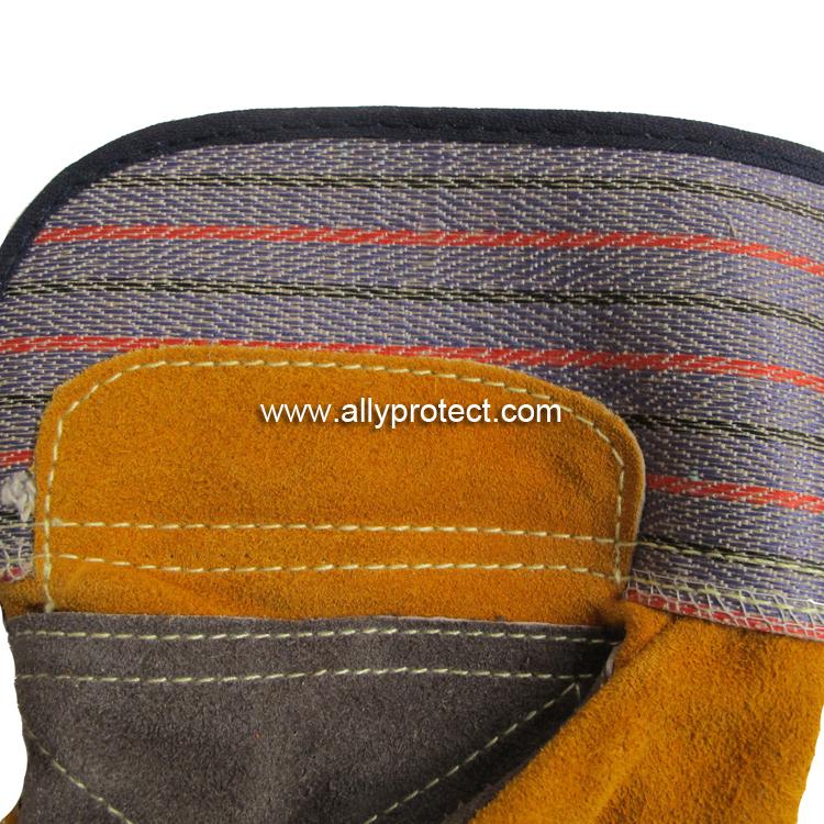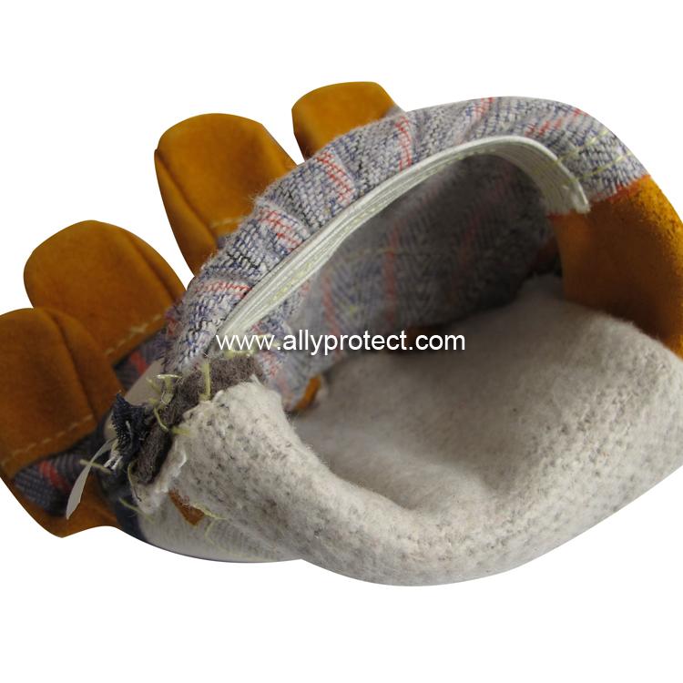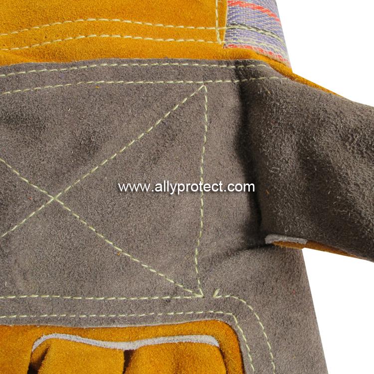 該款手套掌位部分采用耐磨、抗穿插的牛二層皮制成,質(zhì)地厚實(shí)且柔軟舒適,抗穿插及內(nèi)磨程度均勻;