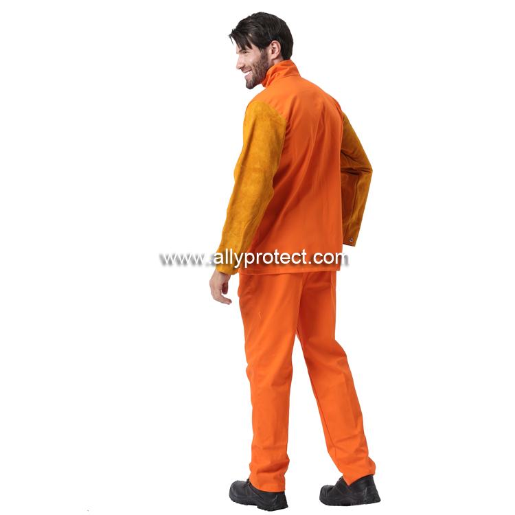 AP-2630 橙色阻燃布配金黃皮袖焊服